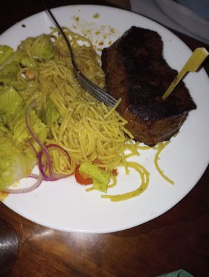 Course 2: salad, fava beans and angel hair pasta with (I think) garlic oil on it: salad dressing wasn't great, but this is probably what I ate the most of. Beans were fine, but I don't usually just eat beans by itself. The pasta was overcooked and since it was just in a light oil had no flavor.
