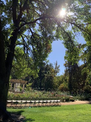 The CARD staff and venue is INCREDIBLE! This Chico Creekside Rose Garden was a phenomenal place to have a wedding. From the lovely roses that truly set the most beautiful backdrop to the gorgeous wooden beams this venue is a great space for weddings. The venue includes the set up and take down of tables and chairs which alone is a huge financial and stress reduction. The venue worked tirelessly to make us feel welcomed. Leading up to the wedding the staff made sure to address any questions or concerns that we had! I would 100% choose this venue again.