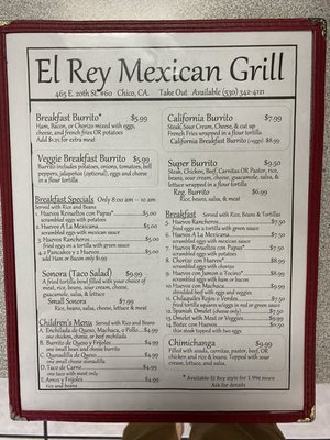 Small Family owned Restaurant based on a relatives restaurant in Marysville called El Rey Mexican Restaurant