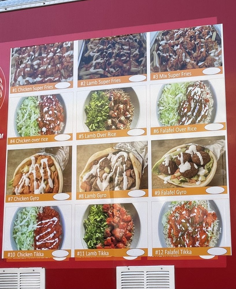 Menu. The truck has the pictures of the menu items on both sides, so don't just look at one side. Fyi they don't have the steak super fries anymore.