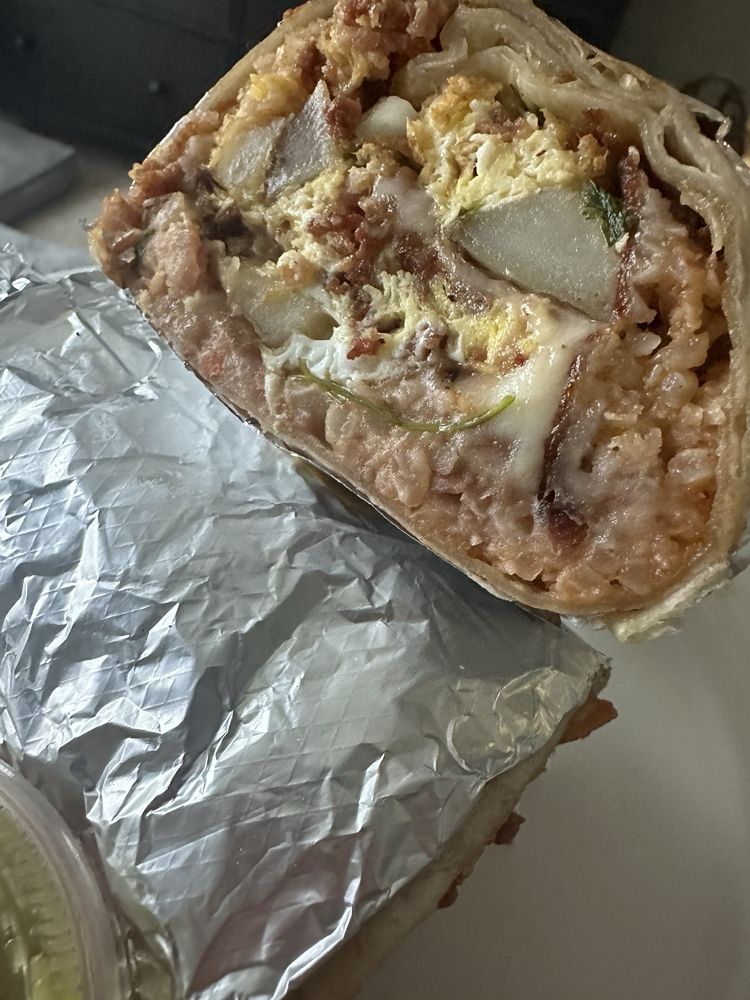 Breakfast burritos are always amazing! We get chorizo or bacon, with egg and potato. They always taste fresh and are full of the good stuff, not just filler. 10/10 for speed too.