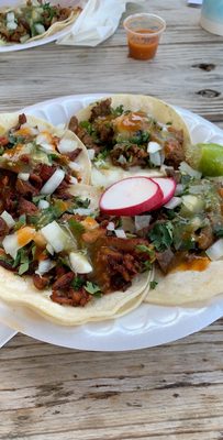 Amazing quesabirrias, amazing fish tacos, their asada, pastor, adobada and chicken tacos are really good. The service is amazing, super friendly all the time.