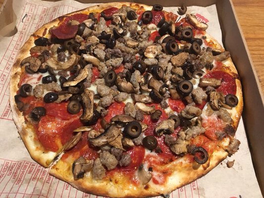 Second time I ordered a pizza and got more then I asked for on my pizza. They don't care and just throw whatever on your pizza. I only wanted a pepperoni, mushroom and olive pizza. Instead I got everything but the kitchen sink. Never ordering this crap again.