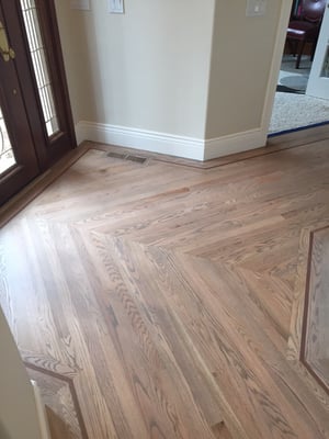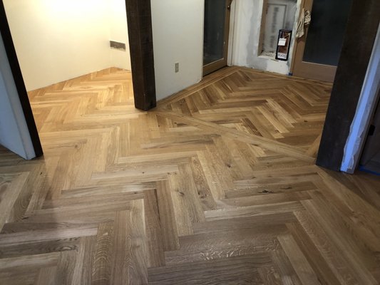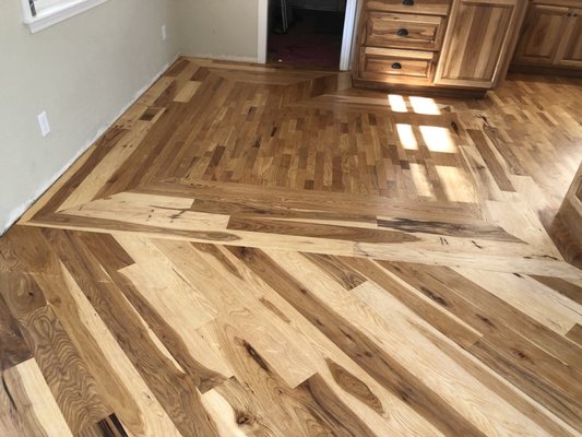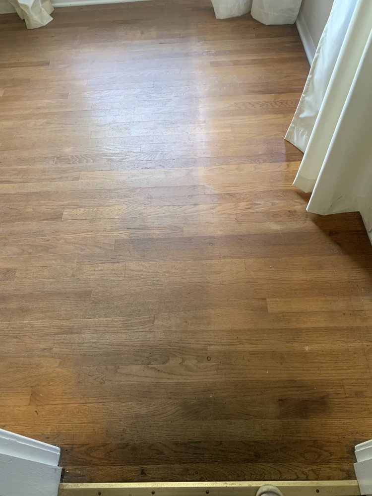 Moore Flooring went above and beyond and I highly recommend them! We moved into a house with the original 1960 wood flooring that was in good shape, but had some bad patching jobs and also a gas floor heater that was no longer hooked up. They helped me find someone to remove the gas floor heater, patched the flooring where the cut-out left a huge hole, and wove in beautiful wood to match fixing all of the old bad patch jobs. Our floors went from dull and messy to absolutely beautiful. I was not able to come to town to check the color for the stain, but they recommended a color based on what I said I liked...over the phone! I trusted that it would work out and I was lucky to have them because the results were amazing.