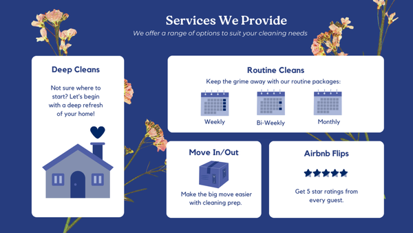 Hey there! We're Sparkle & Shine Cleaning Pros, and we're all about making your space feel fresh and welcoming. We offer a variety of cleaning services, and we're here to keep things clean and comfortable for you. No frills, just friendly and reliable cleaning.