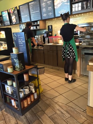 This Starbucks location is the slowest unorganized and this Starbucks location has plenty of staff, yet can't get orders out in a timely manner. Employees at this location ignore online orders and let items sit on counter 10-15 mins before bagging them up. I don't recommend this location plenty of other Starbucks that give better service and when their online orders are ready they bag them up unlike 851 east ave.