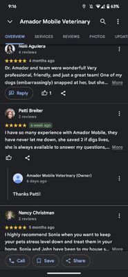 Dr. Amador has been a practicing Veterinarian for over 20 years. We have been doing house-calls for the last 3 years, however, we just relocated to Chico and will continue to offer mobile services until we open a clinic. Please check out our website for more info.